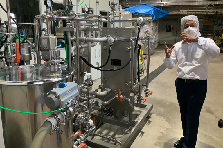 酒質向上のため、新しい技術も導入しています。お酒を通す機器の洗浄・殺菌は欠かせず、業務のほとんどがお掃除に当たることも。衛生管理を徹底されています。