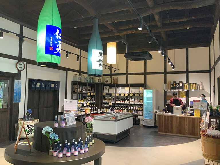 隣接の直売ショップ「鍋店源五右衛門 東蔵店」では、試飲して酒質を確かめた上で購入できます。お酒の他にも、特製酒粕の甘酒(夏はフローズン)や酒粕豚まん等、オリジナルのフードやドリンク、その他に酒器やお酒にまつわるアイテムの販売もあります。